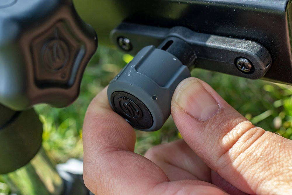 Het voetplateau is beveiligd met twee plunjers, één aan elke kant.