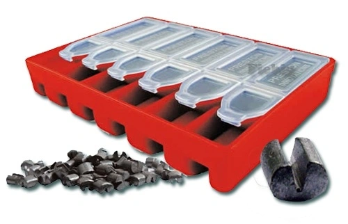 Door de brede inkeping in de stotz zijn deze loodjes makkelijk en snel op de lijn te plaatsen maar, ook snel weer te openen om te verwijderen.